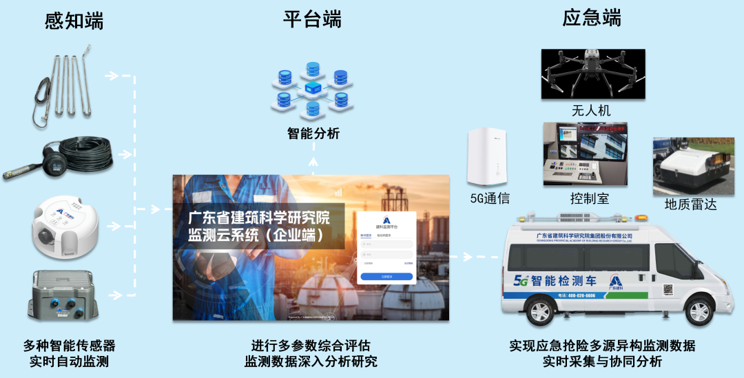 该成果针对深基坑智能监测预警现有设备、测量方法、监测数据深化应用等方面进行了深入分析研究:构建了融合感知的深基坑智能监测关键技术体系,实现从点变量至场变量的监测方法提升;创建了基坑安全多参数综合评估体系,实现“预测-评估-预警”全过程监控;建立了基坑应急抢险监测体系,集成5G通信、无人机、地质雷达等多种智能监测设备,实现了基坑应急抢险多源异构监测数据的实时采集与协同分析。该成果已在巴斯夫(广东)一体化项目、中共广东省委党校(广东行政学院)新校区建设工程等重大工程中成功应用。